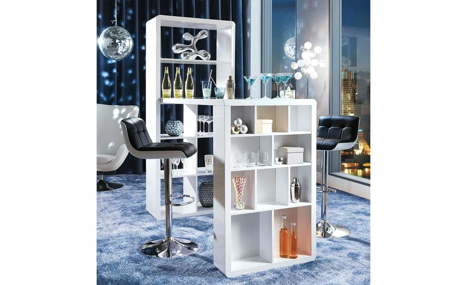 Bereichern Sie Küche, Essbereich oder Partykeller mit der Bar Polar. So sind Sie für den Alltag oder auch jeden feierlichen Anlass perfekt ausgestattet. In klassischem Weiß mit Hochglanzakzenten gestaltet und durch die schlichte Formgebung, fügt sich Polar nahtlos in Ihre bereits vorhandene Einrichtung ein. Besonders gut lässt sich die Bar aber mit den anderen Möbeln der Serie kombinieren. Polar ist offen gestaltet und bietet ausreichend Stauraum für Flaschen, Gläser und Zubehör zum Mixen von Cocktails. Alternativ lassen sich die Fächer natürlich auch wunderbar für Geschirr und Lebensmittel nutzen. Die Böden sind melaminbeschichtet und somit kratzfest und strapazierfähig.