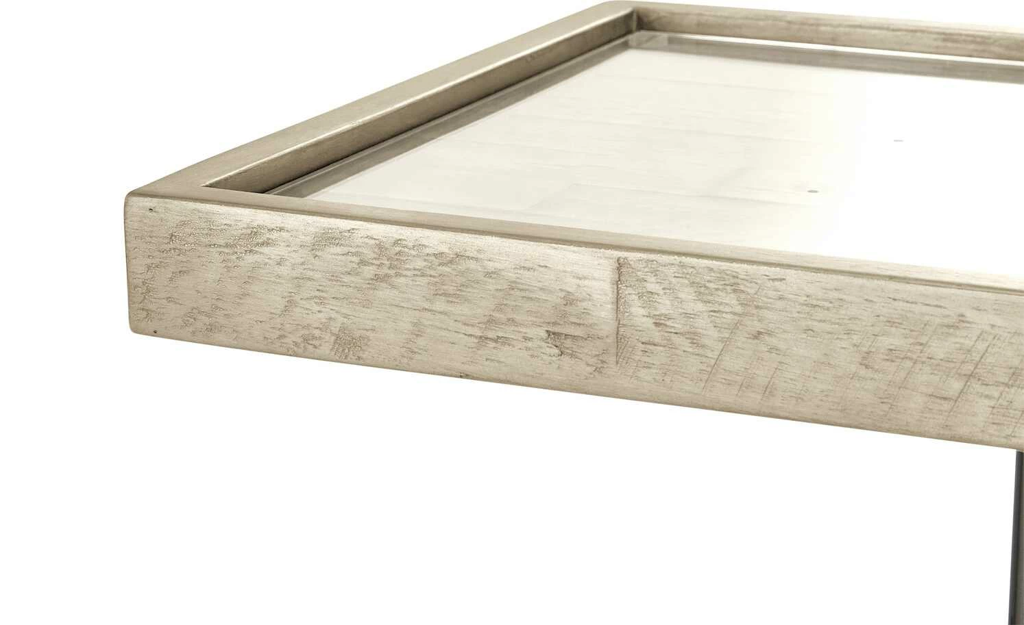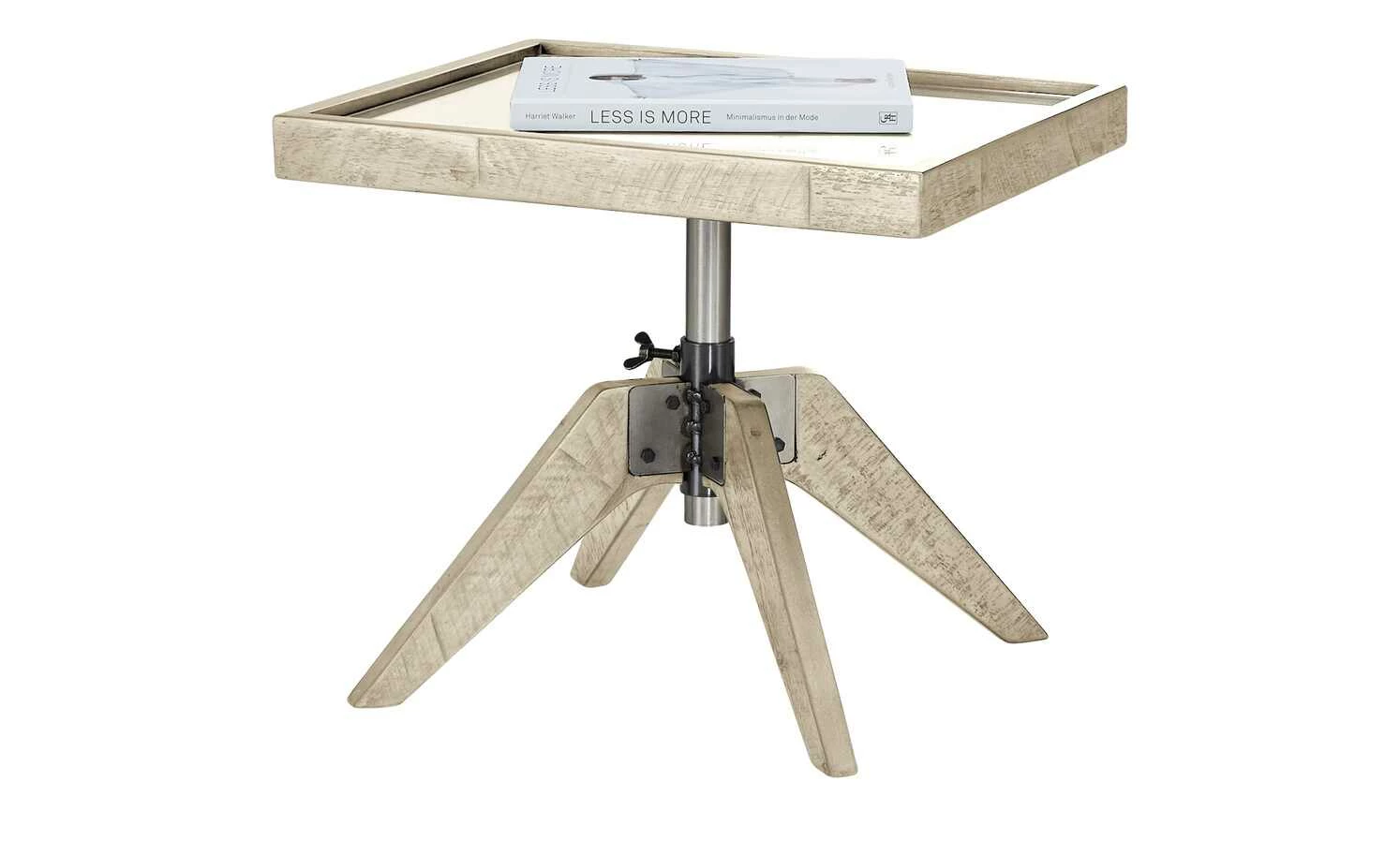 Der Beistelltisch Carpi Akazie punktet mit seiner Funktionalität. Er lässt sich ganz leicht in der Höhe verstellen – und zwar von 34 bis 54 Zentimeter Höhe. So können Sie ihn ganz nach Bedarf anpassen. Die rechteckige Tischplatte ist aus massiver Akazie in Vintageoptik gefertigt. Zusätzlich ist sie mit einer Glasoberfläche ausgestattet. Sie ist robust und lässt sich ganz leicht pflegen. An das 4-Fuß-Gestell aus massiver Akazie schließt sich eine Gestell-Säule an. Sie ist aus stabilem Metall gefertigt.