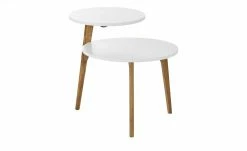 Der Beistelltisch Viale überzeugt mit skandinavischer Leichtigkeit. Für den stabilen Stand sorgt das 3-Fuß-Gestell aus massivem Eichenholz. Tischplatte und Ablage sind rund und stufenförmig angeordnet. Das ist praktisch und gibt dem Tischchen einen besonderen Twist.