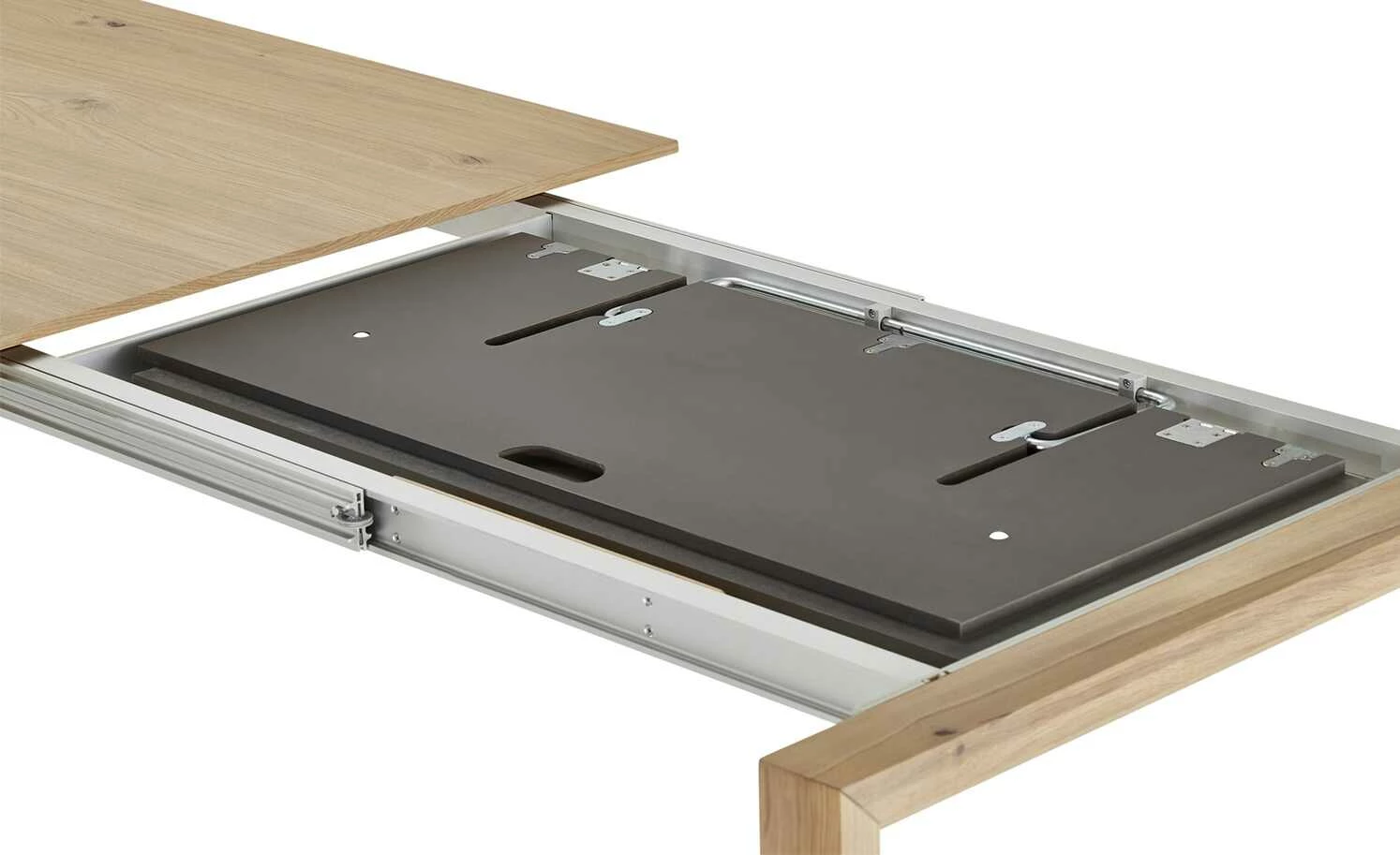 - Mehr zu Ausstattung / Funktion: Frontslide-Auszug mit 1 Klappeinlage in Fenix Londra (Hellgrau) ca. 100 cm
