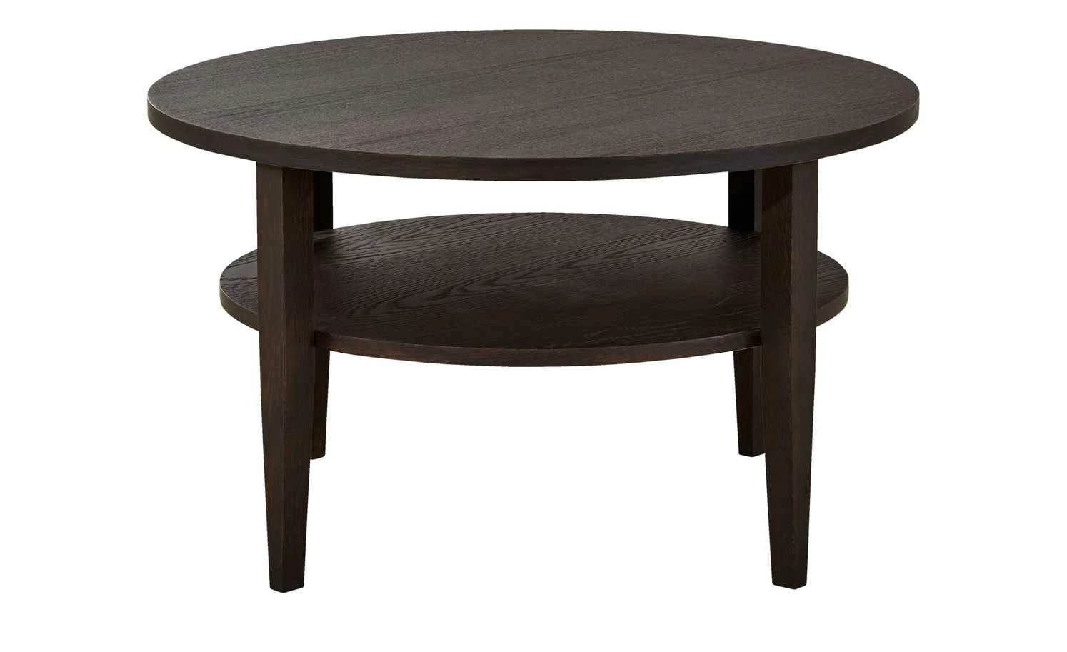 Der Couchtisch Haiti überzeugt mit seinem eleganten und zugleich natürlichen Design. Tischplatte und Ablage sind rund und werden von vier schlanken Beinen getragen. Haiti ist aus Mooreiche gefertigt. Sie hat einen sehr dunklen Farbton und eine attraktive Maserung. Während für Tischplatte und Ablage Mooreichenfurnier verwendet wurde, ist für das Gestell Massivholz verwendet worden.