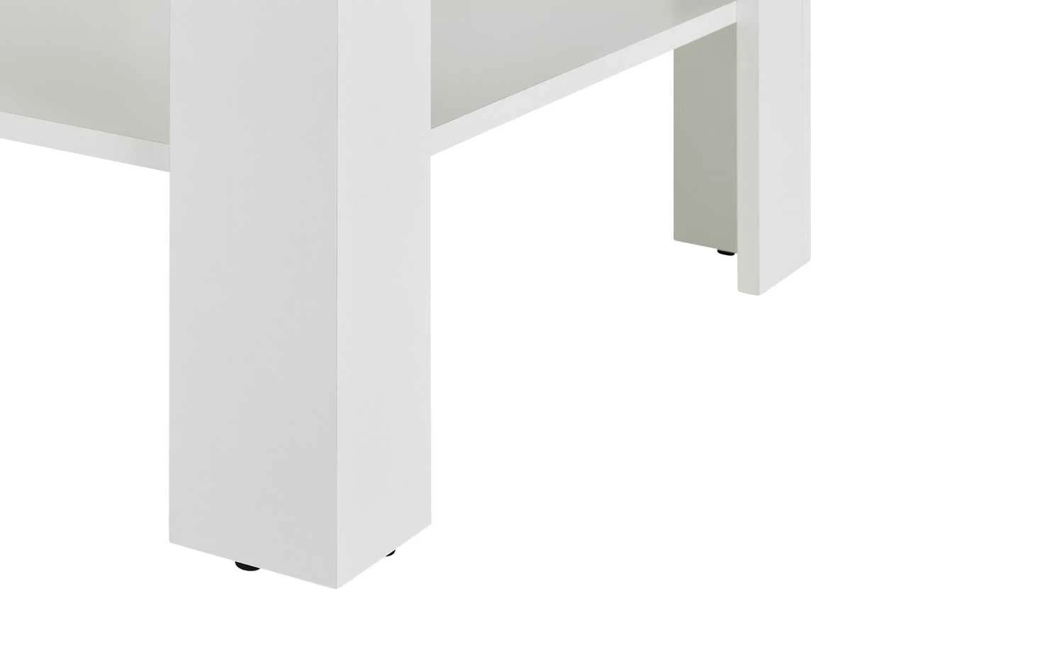 Schlichtes Design und praktischer Nutzen gehen beim Couchtisch Isola Hand in Hand. Neben der rechteckigen Tischplatte steht Ihnen eine Ablage zur Verfügung. Alle Oberflächen sind melaminbeschichtet und deshalb unempfindlich und pflegeleicht. Zum Schutz des Bodens gibt es kleine Gleiter unterhalb der Tischbeine.