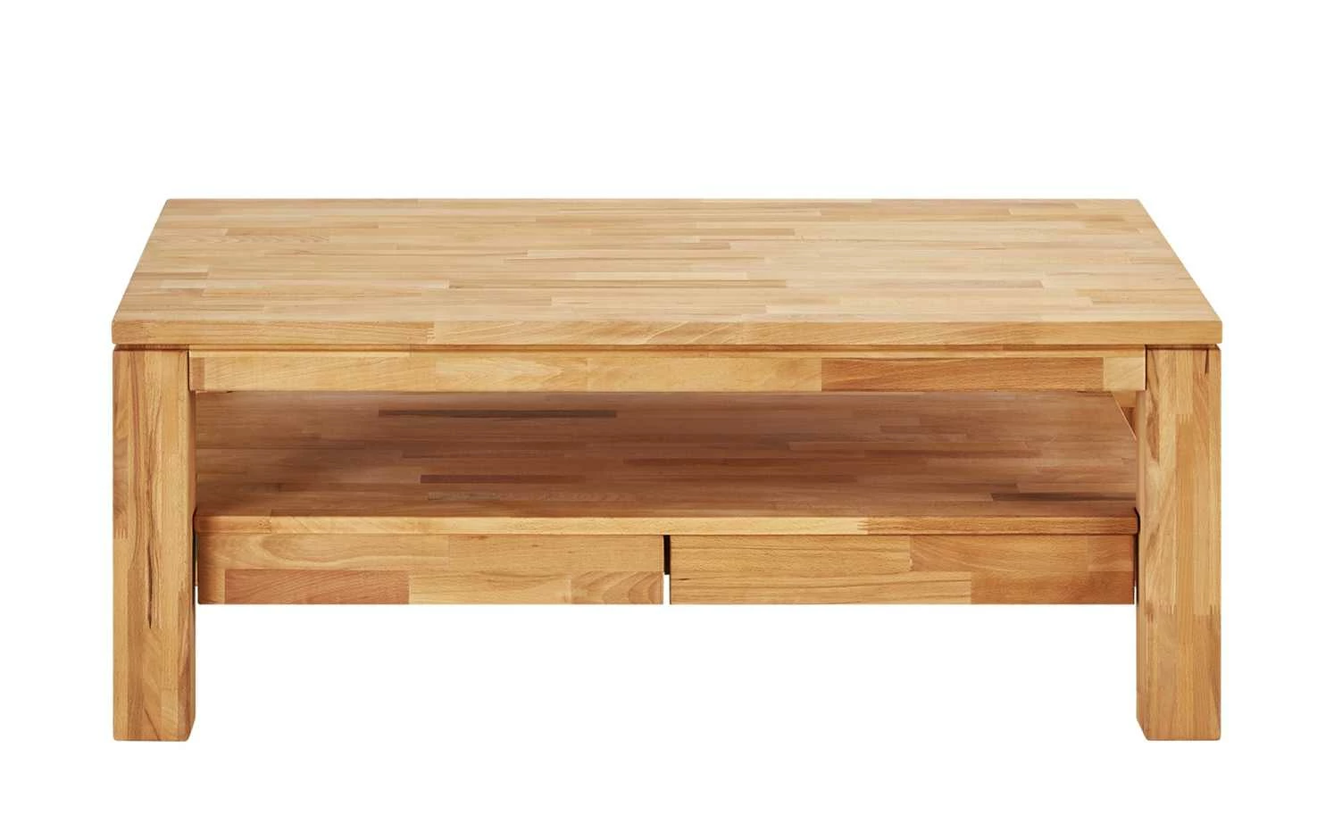 Beim Relaxen auf dem Sofa braucht man eine Abstellgelegenheit für Teetasse oder Weinglas. Da macht der Couchtisch Madura eine gute Figur. Die rechteckige Tischplatte bietet viel Stellfläche. Außerdem ist der Tisch mit einer Ablage unterhalb der Tischplatte ausgestattet. Zusätzlich können Sie die beiden praktischen Schubladen nutzen. Madura besteht komplett aus massiver Kernbuche. Die Oberfläche ist geölt worden, um das Echtholz zu schützen.