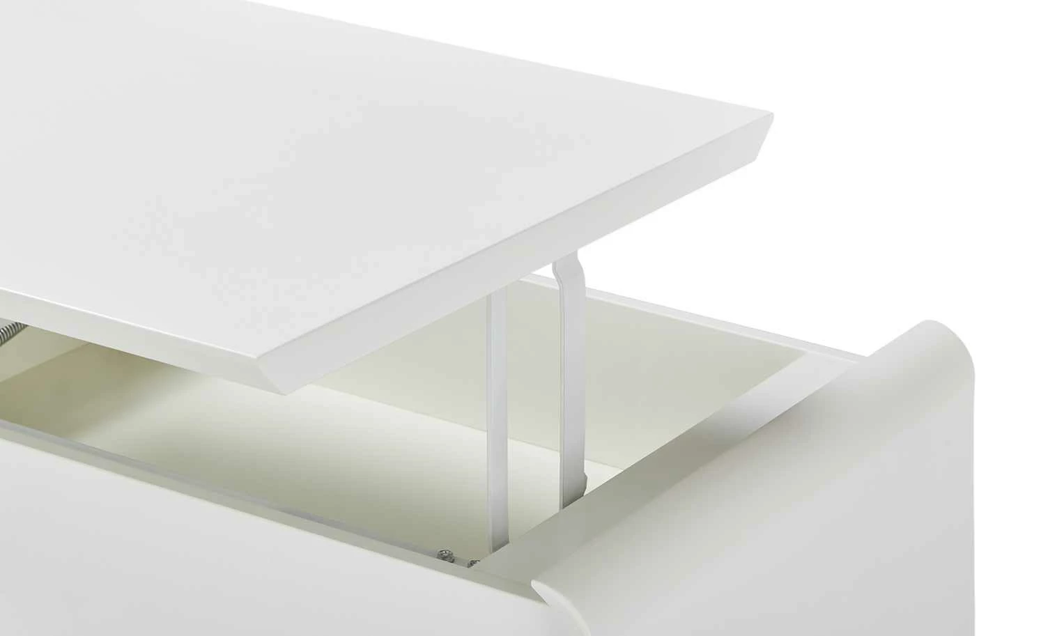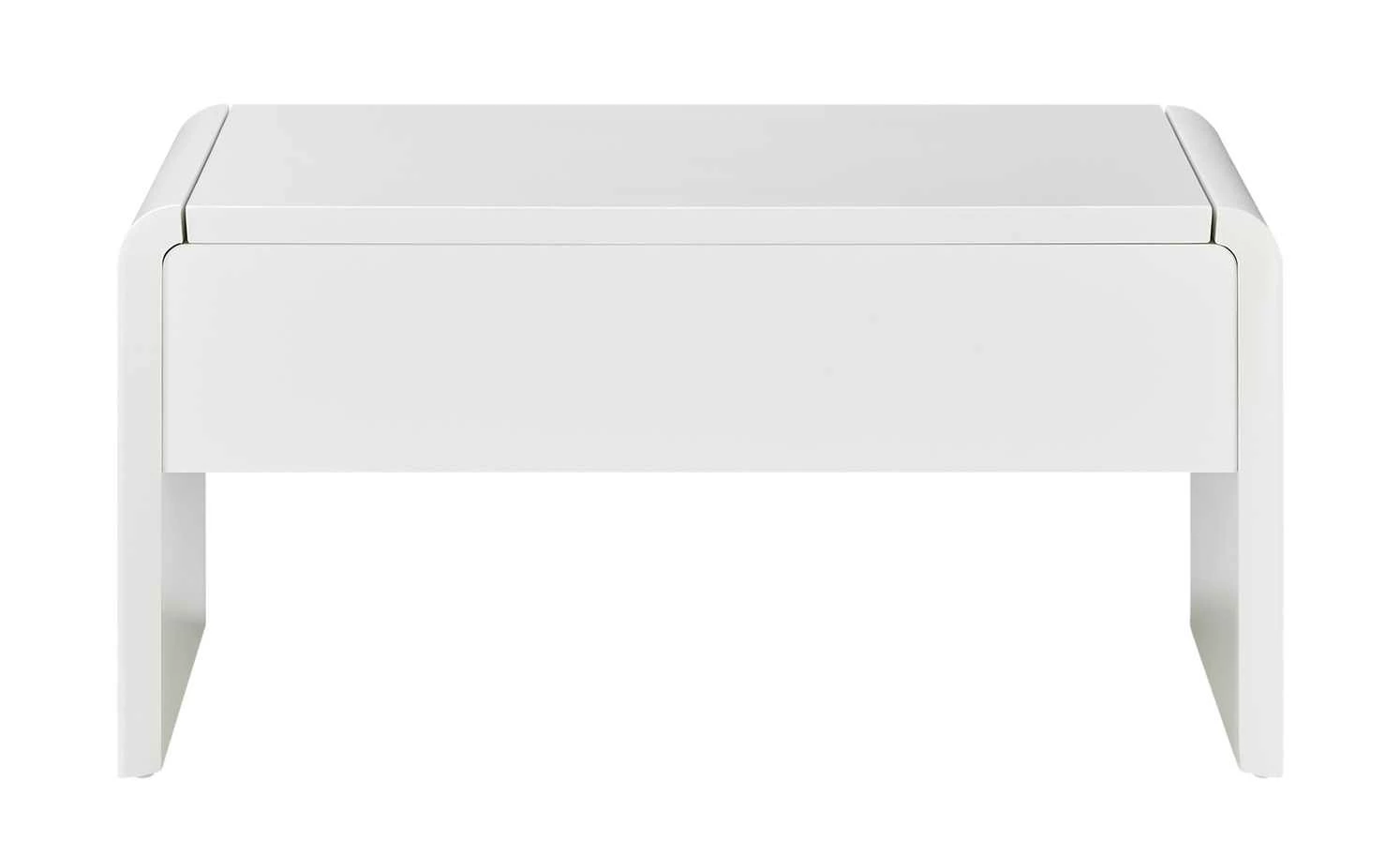 Ein kleines Multitalent ist der Couchtisch Ponza. In Sekunden können Sie die Tischhöhe ganz einfach von 46 Zentimetern auf 70 Zentimeter ändern. Dann hat die Tischplatte eine angenehme Höhe zum Arbeiten an Laptop, Tablet und Co. Mit der Liftfunktion ist das Verstellen der Tischplatten kinderleicht. Unter der höhenverstellbaren Tischplatte finden außerdem Magazine und Fernbedienungen Platz. Durch sein schlichtes Design und der zeitlosen Farbe Weiß fügt sich der Couchtisch Ponza in nahezu jeden Raum problemlos ein.