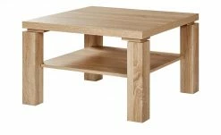 Durch sein zeitloses Design passt der Couchtisch Morgo zu vielen Einrichtungsstilen. Die rechteckige Tischplatte ist schön groß, außerdem verfügt Morgo über eine zweite Ablageplatte. Dadurch ergeben sich vielseitige Ablage- beziehungsweise Stellmöglichkeiten. Ein optisches Highlight ist die leicht versetzte Verbindung zwischen Tischbeinen und –platte. Der Tisch hat eine natürlich wirkende Holzoptik (Nachbildung), die zur zeitlosen, gradlinigen Formgebung passt.