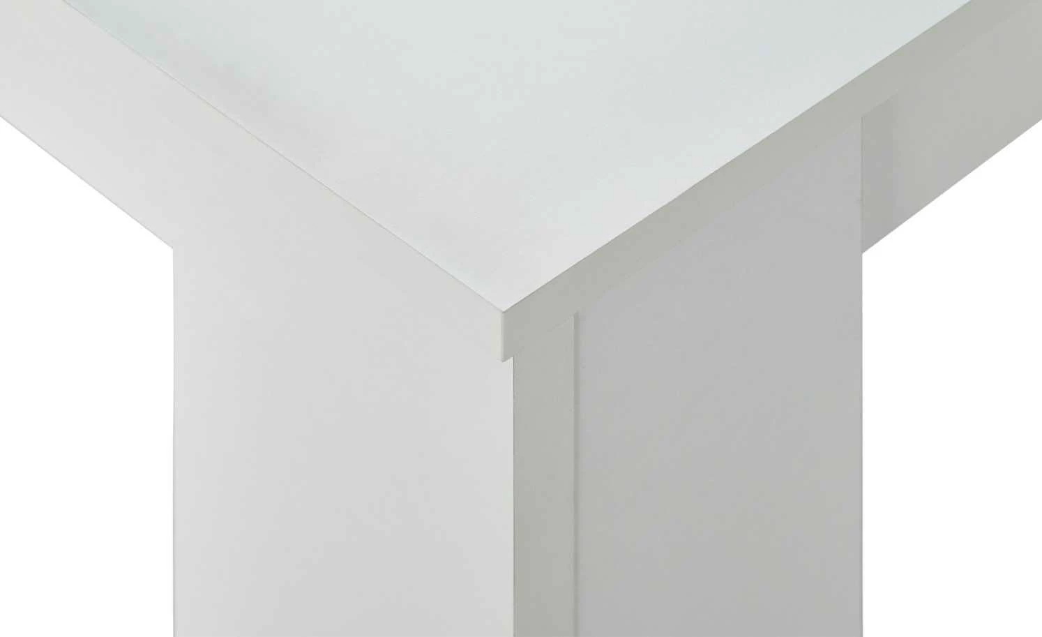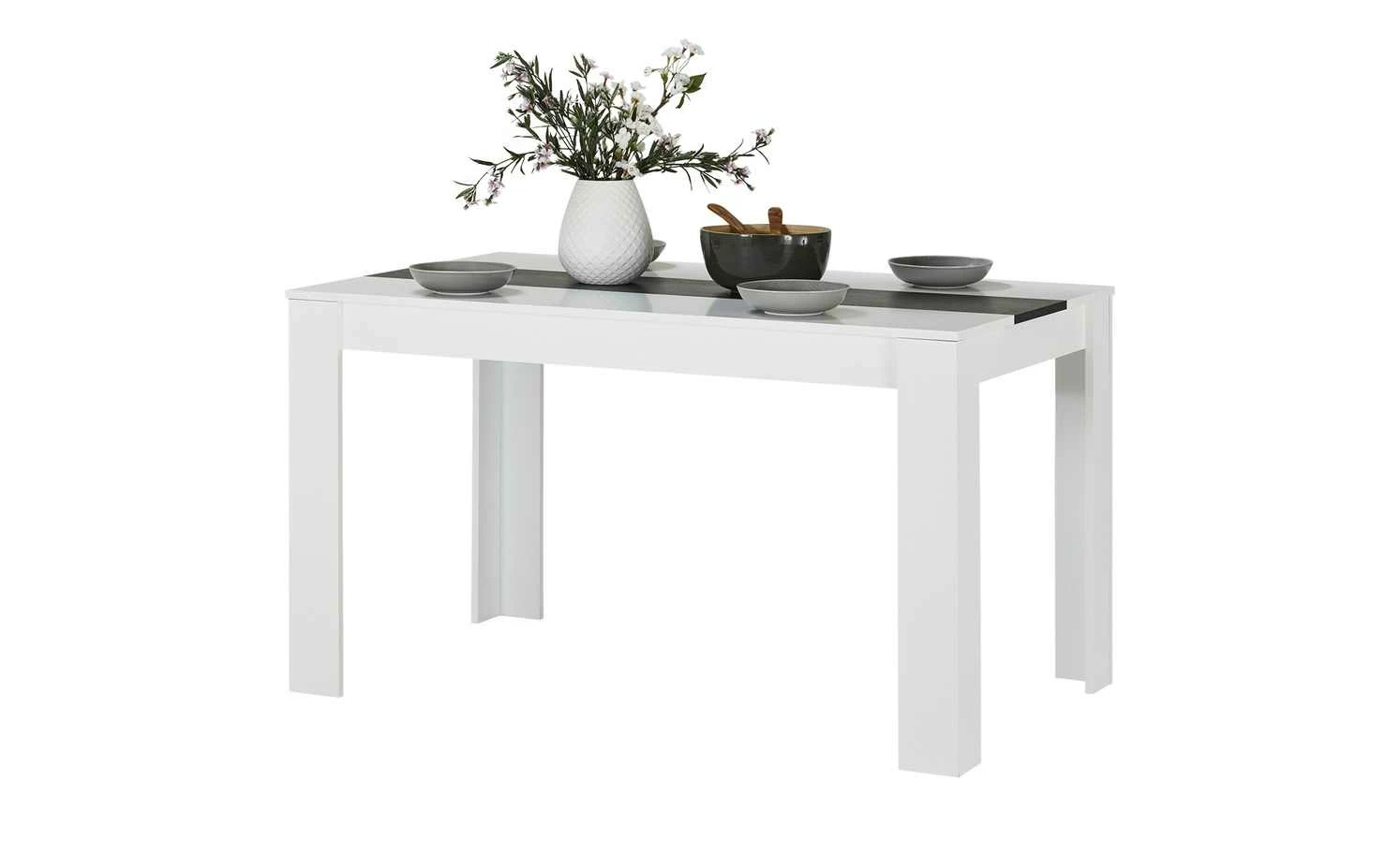 Bis zu acht Personen können am Esstisch Amin einen Platz finden. Tischplatte und Gestell sind stabil gearbeitet und haben eine folierte Oberfläche. Sie ist unempfindlich und leicht zu pflegen. Das attraktive Weiß wird bei der Tischplatte mittig in Schwarz abgesetzt. Ein toller Kontrastakzent.