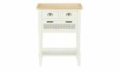 Der Konsolentisch Ilmennau ist ein Highlight für Wohnraum oder Speisezimmer – und macht sich auch im Flur gut. Sie können darauf Pflanzen, eine Lampe und viele dekorative Dinge platzieren. Neben der rechteckigen Tischplatte verfügt Ilmenau auch über eine praktische Ablage im unteren Bereich. Der Tisch ist aus massivem Fichtenholz gefertigt, was ihn stabil und langlebig macht. Tischplatte und Ablage sind im natürlichen Fichtenholzlook gehalten. Das Gestell setzt sich in Antikgrau ab, wobei die gewischte Farbe mit Used-Effekten versehen worden ist. Das passt perfekt zu den Verzierungen im Landhausstil.