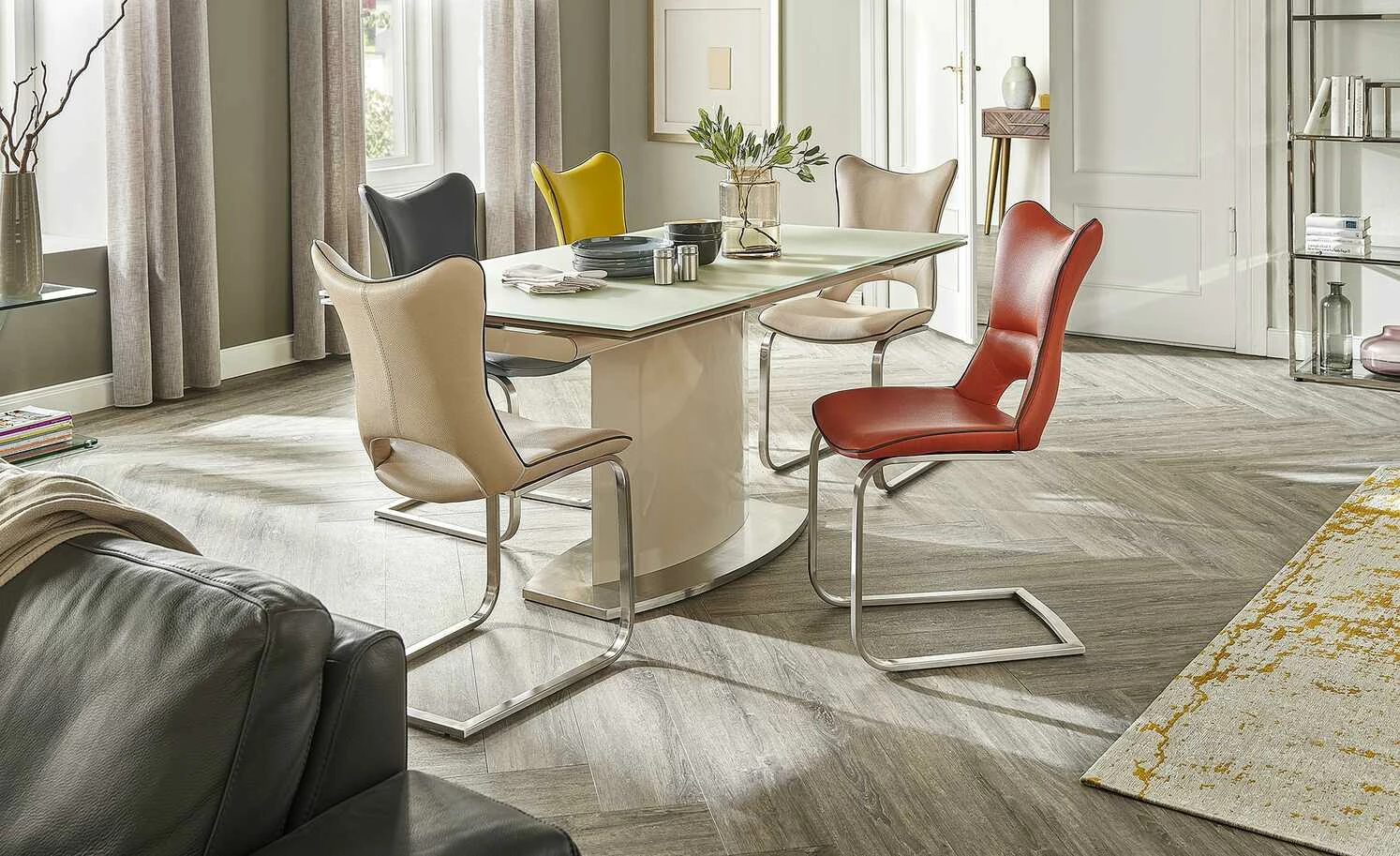 - Zarter Beigeton mit Akzent aus Edelstahl