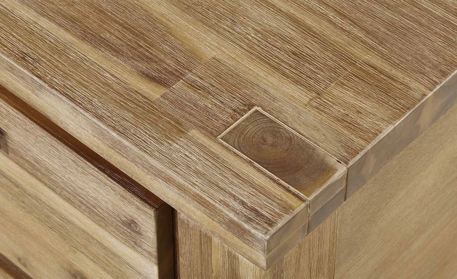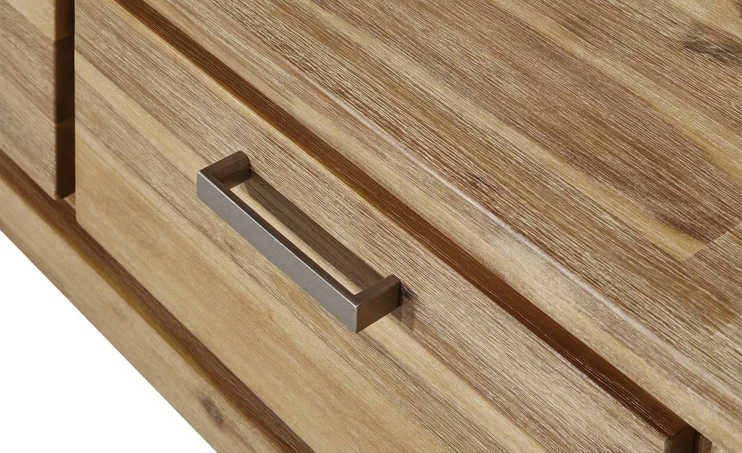 - Mehr zum Material: Seiten aus Akazie furniert sandfarben gebeizt und lackiert, Tischplatte und Fronten aus Akazie massiv sandfarben gebeizt und lackiert